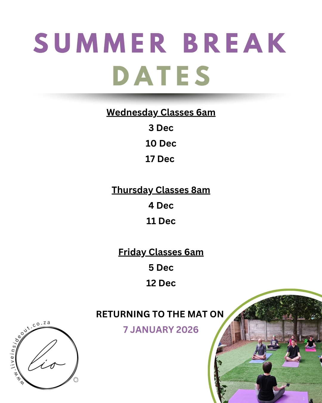 For morning sessions in studio, join us at: